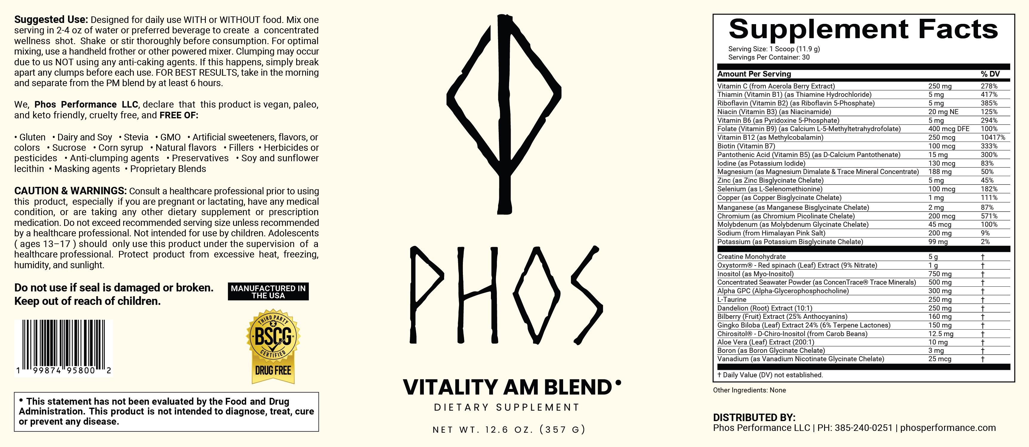 | Phos Performance LLC | PHOS VITALITY AM BLEND | 25231A | Antioxidant, Heart Health, Joint Health, Mineral, Sleep Aid, Vitamin, Wellness |